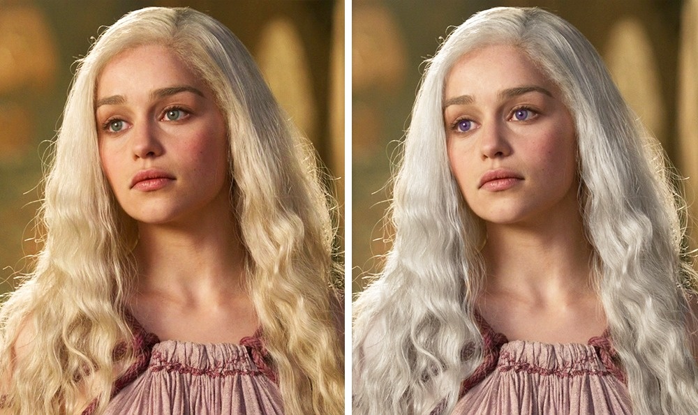 En las páginas del libro, la Madre de los Dragones tenía el aspecto valyrio clásico: cabello plateado y ojos de color violeta.