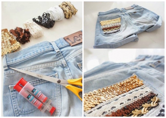 3. Or you can decorate its rear pocket using a sequin ribbon.