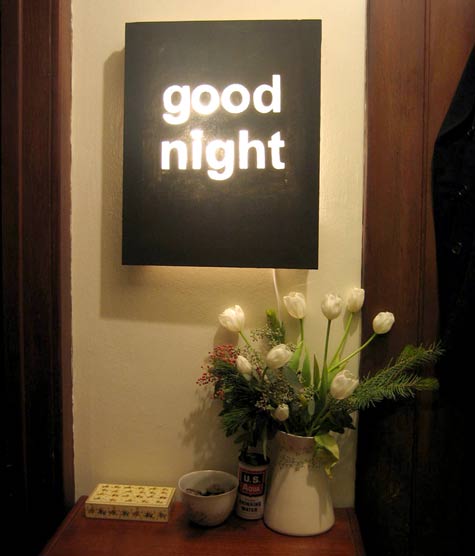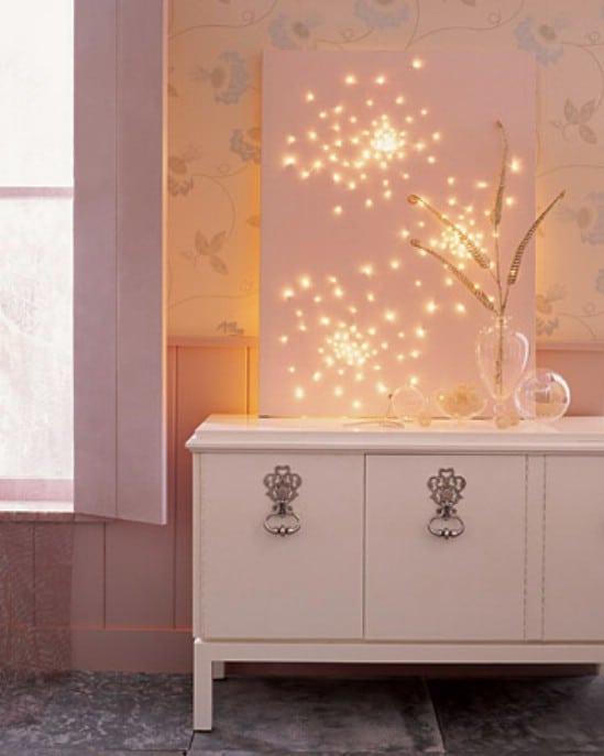 Make your nightlight a piece of art. Poke holes into a canvas to create a design and place lights behind it.