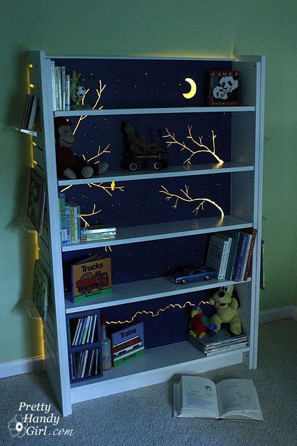 These lights use LED tea lights. They are perfect because they don’t give off too much light which could wake the baby. Learn how to make it below.