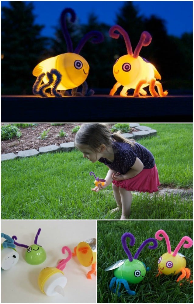 You can upcycle your plastic Easter eggs for this project. Just glue an LED light in one and decorate like a cute bug.