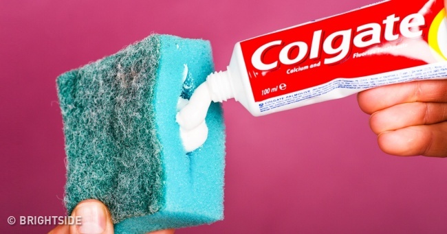 If you want to get rid of white stains on your bathroom and kitchen tiles, you can use toothpaste and a regular dishwashing sponge. Put some toothpaste inside the sponge, and you will get a long-lasting polishing device for your tiles.