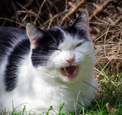 You probably don’t have to be told that this is a bad sign. When a cat is hissing or growling, he is very grumpy and wants to be left alone. The best thing you can do is walk away.