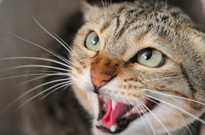 This sound is not so cute. Cats release low meows when they are irritated or ready to defend themselves. When you hear this noise, be extra attentive to your cat.