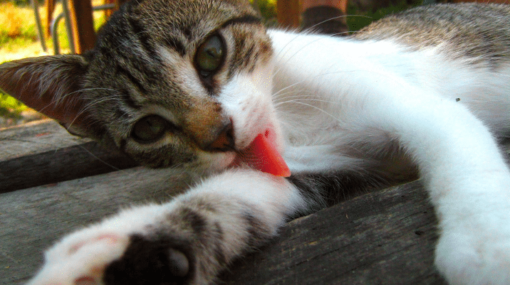 Cats might lick their fur as a way of controlling their body’s temperature. The tongue can help to distribute natural oils found on the cat’s skin. These oils might be insulating or cooling, allowing your cat to remain at its optimal temperature.