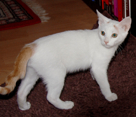 If your cat’s tail is curled at the end, it means that he is happy. Your cat doesn’t have a care in the world, except maybe when you will pet him next.