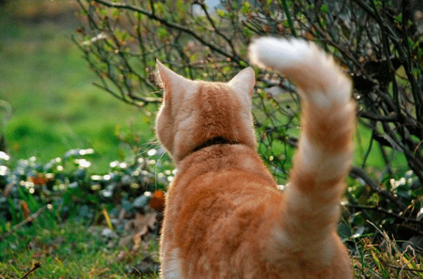 If the tip of your cat’s tail is twitching, he is excited and focused. This is usually the case when he is hunting. Let your cat capture his prey, and he will calm back down.