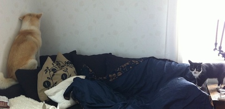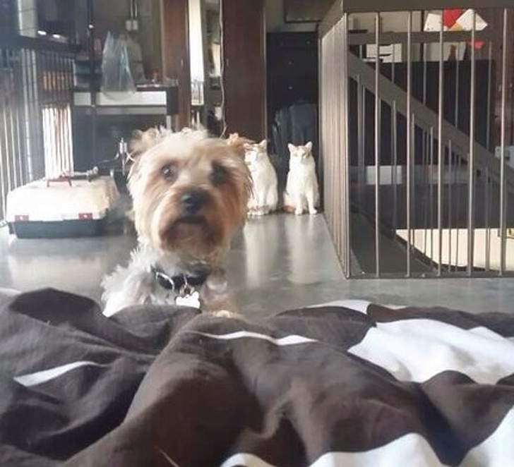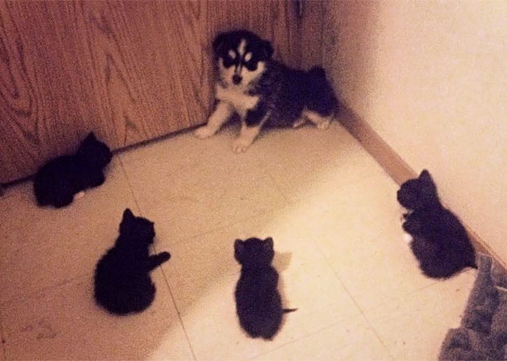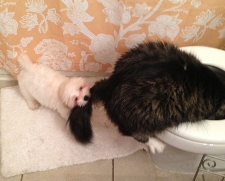 13. This is the result of the first meeting with the cat: