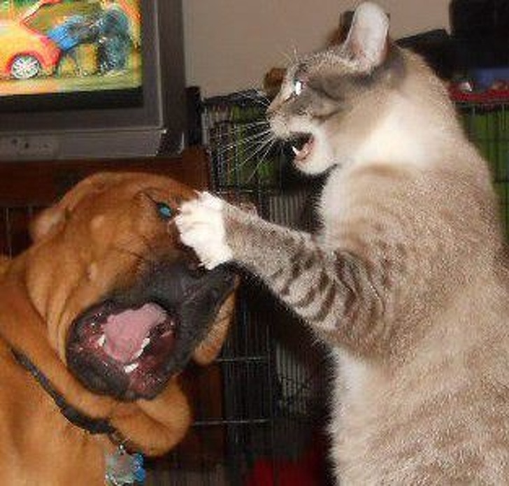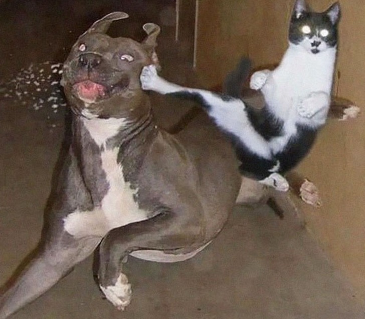 We have collected photos of dogs and cats that will prove to you that there’s nothing more dangerous than a cat in a bad mood!