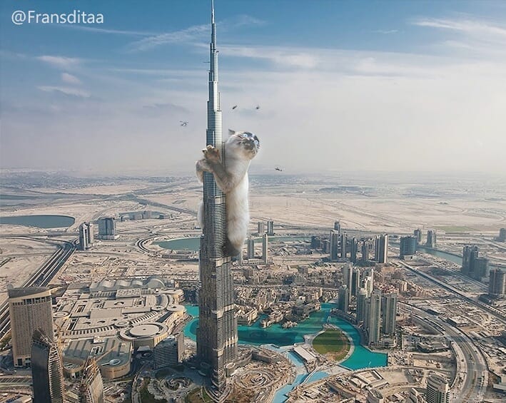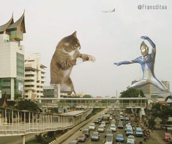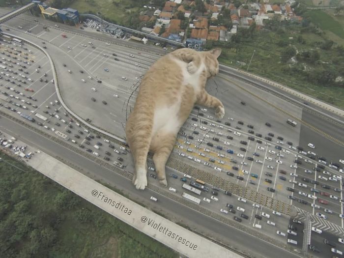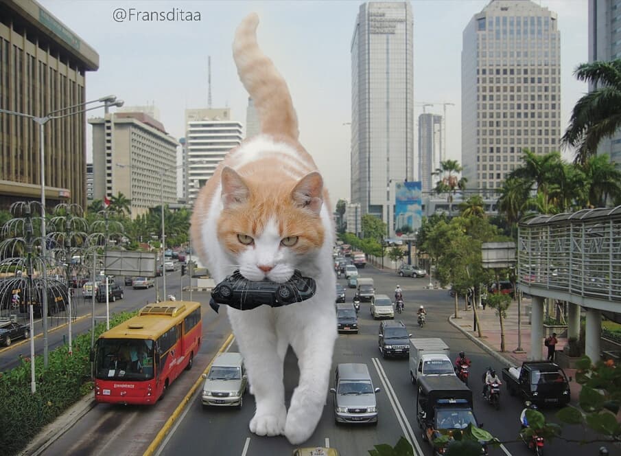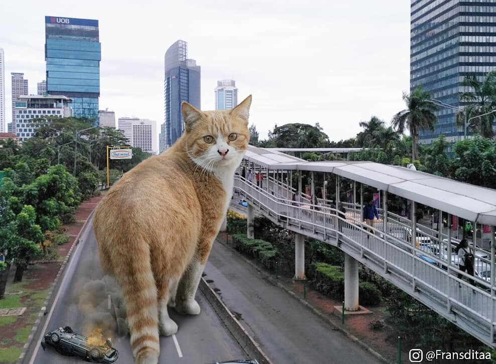 These Godzilla-sized cats are taking over cities in the same way they take over our hearts and our mobile screens. If you want to see more giant cats in places they’re not supposed to be, you can follow Fransdita on Instagram.