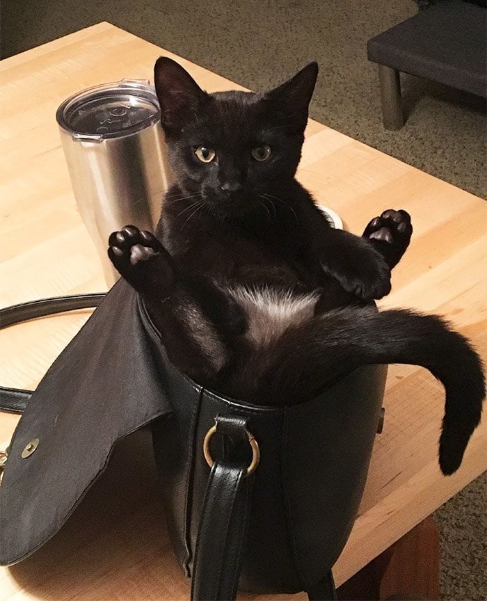Look at this cat all snug in his owner’s backpack. I bet he is really going places!