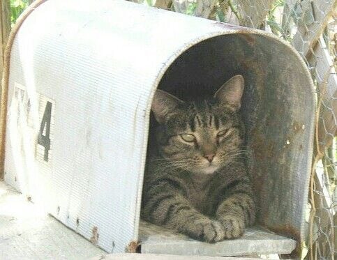 Cat mail is the new thing. It arrives when it wants and pushes the other mail out of the box.