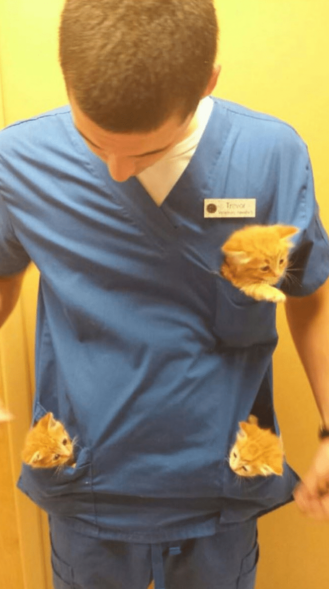 Dad was trying to enjoy some alone time in the cold sink — but then … kittens.