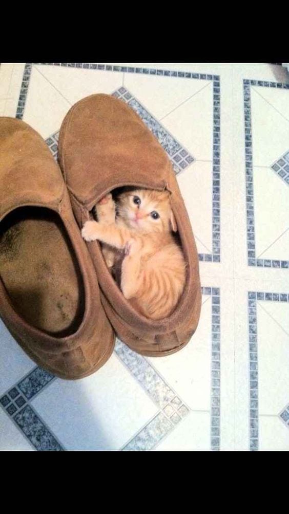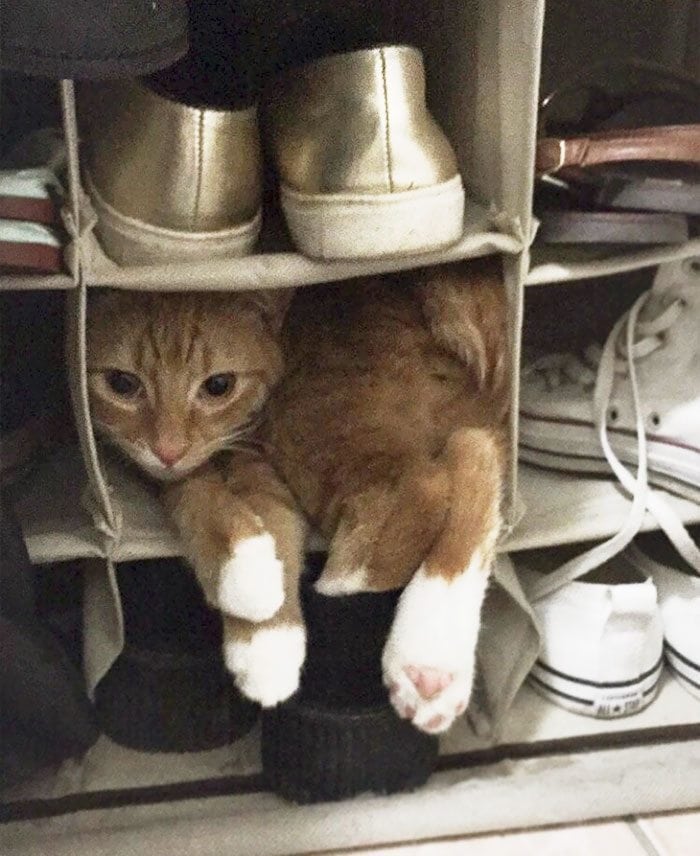 A storage spot for sneakers — or an adorable orange and white kitty.