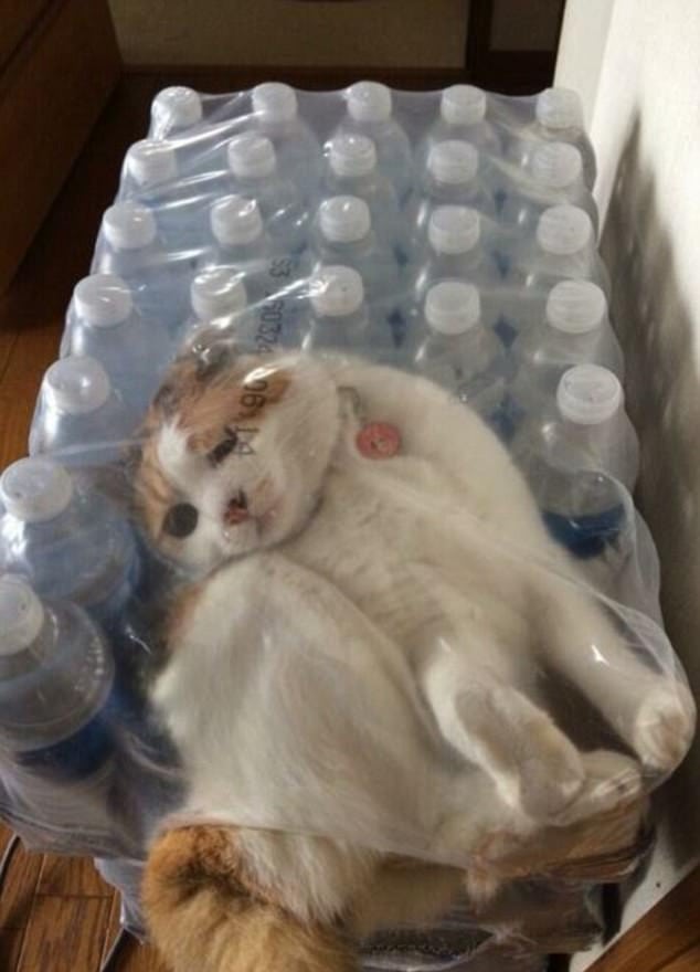 The supermarket had a special bundle deal today, one free cat with every case of water. Get them while supplies last!