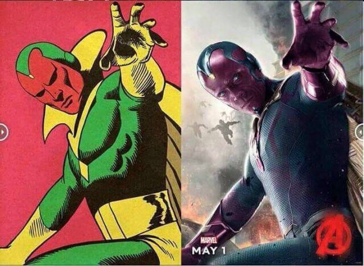 La hija del actor Paul Bettany, que tiene 7 años de edad, lloró cuando se completó el rodaje de la película “Vengadores: La era de Ultrón”, porque “ella quería que regresará su papá morado”. ¡De la boca de los niños vendría la verdad! ¡El UCM (Universo Cinematográfico de Marvel) definitivamente ha logrado un éxito inigualable! Pero ¿cuál es su secreto? Bueno, creemos que es solo la unión mágica entre un elenco brillante, un guion increíble y el desarrollo de los personajes, pero el elemento más importante es el amor por los cómics. Sin embargo, a veces hay que sacrificar algunas cosas por el bien mayor, incluso si eso significa desviarse de la versión original.