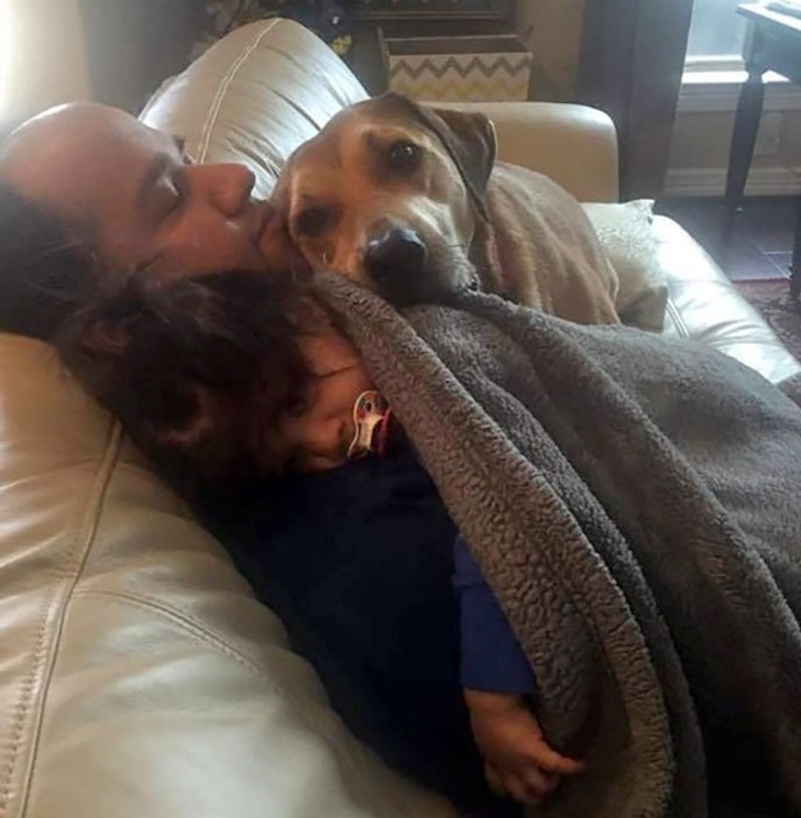 23. “Our dog fell into an icy pond yesterday. My wife jumped in and saved him. This is how they slept last night.”