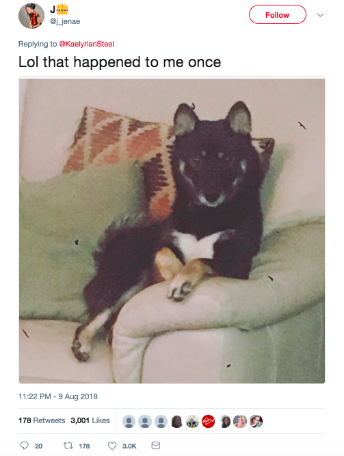 When Twitter user posted a picture of her dog, clearly disappointed after being left alone for a quick trip to the gym and the store, the Internet laughed.