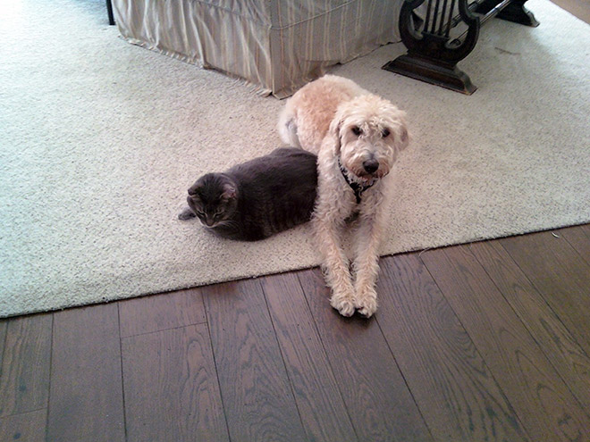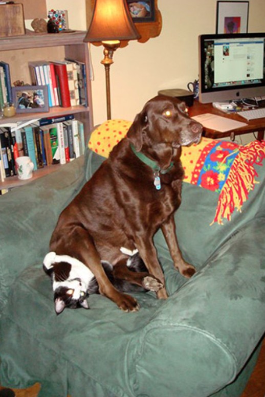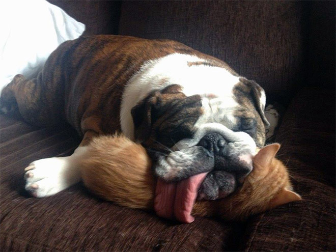 In most people’s minds, dogs often play the part of the good, but naive, animal, who often bears cats’ behaviors, just because they’re too good to rebel. On the other hand, cats are often seen as the sly, opportunist ones, who take advantage of the counterpart’s good temperament.