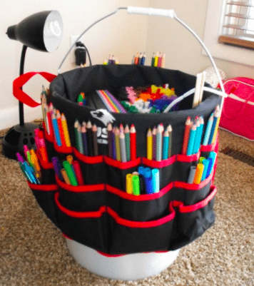 Every artist knows that you can never have too many options. Keep ALL your art supplies in one place with this awesome bucket-repurposing craft. Now you will never again have to leave a set of paints behind, or anything else your artsy heart may desire.