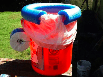 Camping can be rough, especially when you wish a bathroom was near. This portable camping toilet make from a five gallon bucket just might save you some trouble. The pool noodle makes for a soft seat. Happy camping!