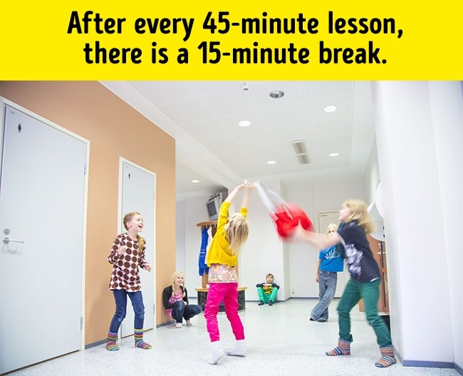 No matter how interesting the lesson is, the most interesting time for any kid is a break. Children in Finland have 15 minutes of rest after every 45 minutes of studying