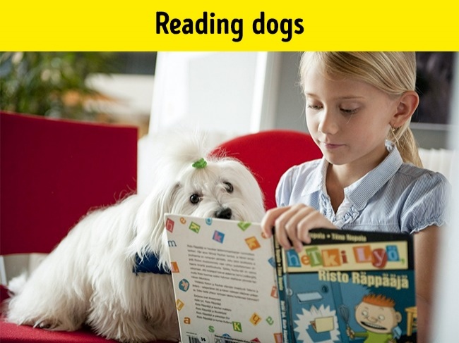 There are specially trained “reading” dogs in the libraries of Finland that instill a love of reading in children. These dogs listen to the kids reading books or telling them stories.