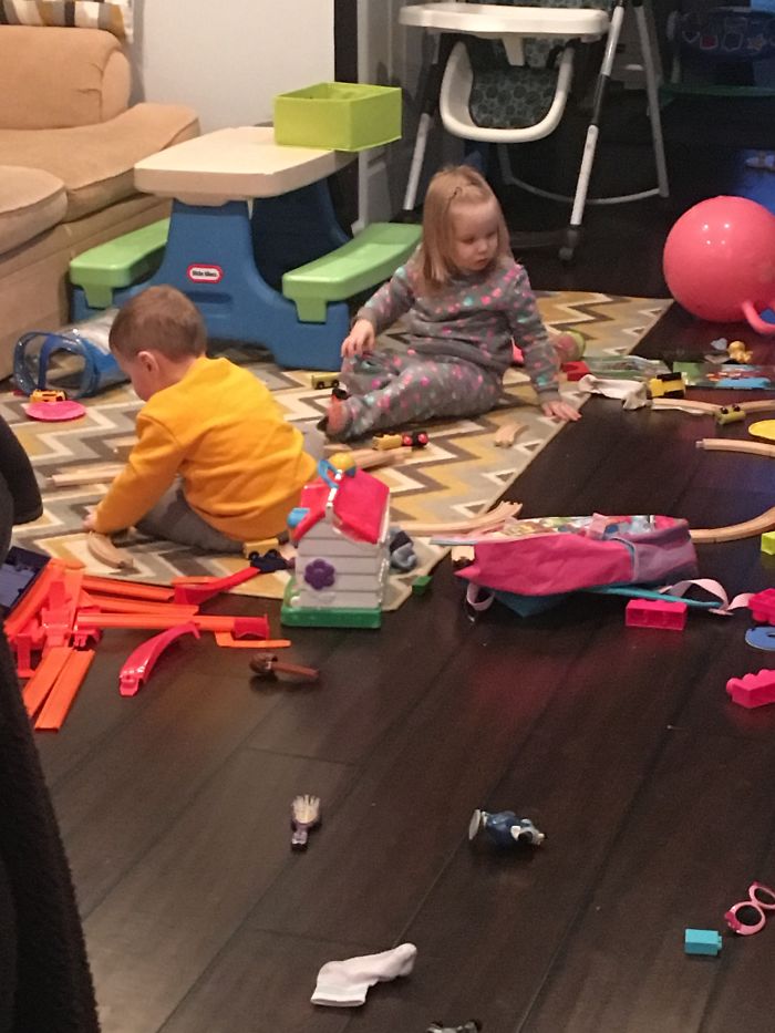 5 – Elas resolveram ajudar a mãe a limpar o chão… com lenços umedecidos… Vários lenços!