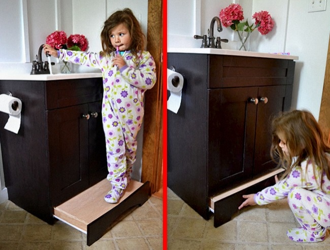 Turn the bottom drawer into a step drawer to make it easier for your kid to reach the sink.