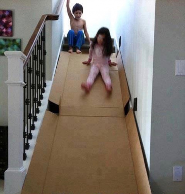 A bit of creativity can get you a lot of free time. Get an old box, and make an indoor cardboard slide for your kids. This will take their minds and attention off nagging for a while. Once done, they can proceed to color their slide. Just remember to pad the landing zone with some cushions and pillows.