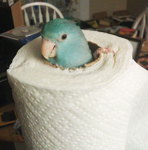 This pigeon may have discovered the best method for saving bread for later. Hopefully, the necklace of carbs doesn’t get stolen by fellow pigeon mates.