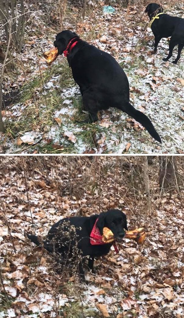 This dog’s owner bought him a new bone. From nap time to poop sessions, the bone and dog are inseparable.