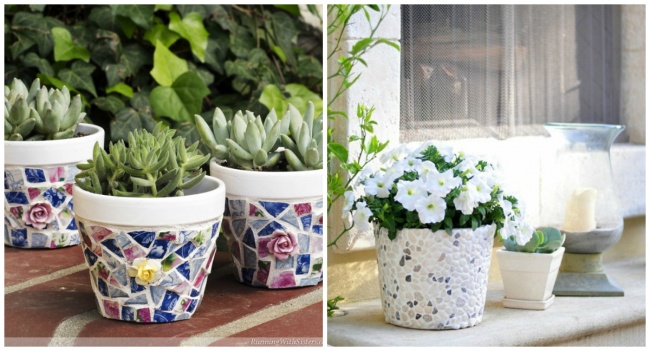 Your favorite cup is broken? Don’t be sad! You can use the broken pieces to decorate some flowerpots. By the way, you don’t need to break dishes because you can use river rocks as well.
