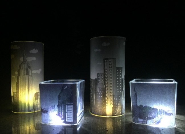 Such beautiful lamps can be made of regular vases or glasses and your favorite pictures.