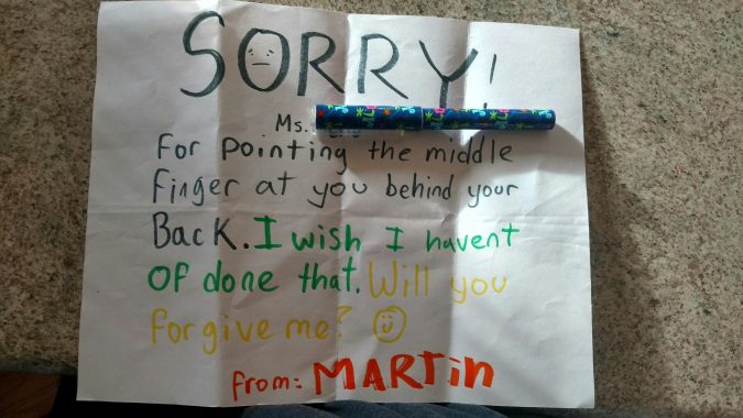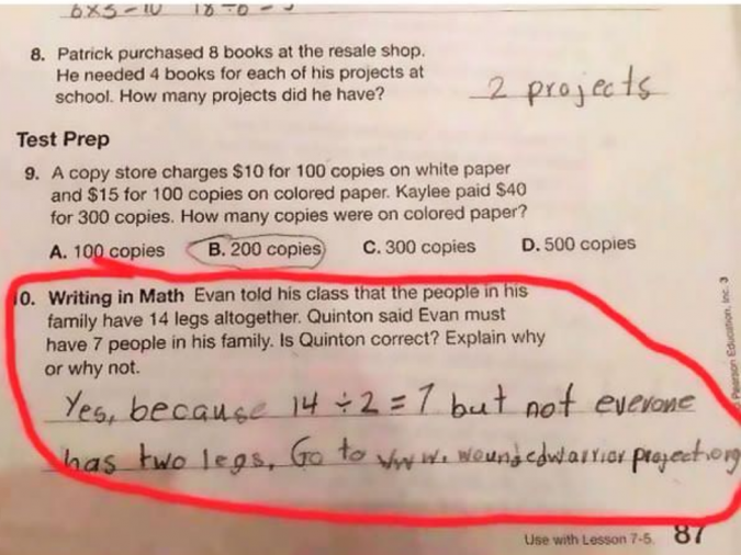 OK, so maybe this kid isn’t exactly following the spirit of the spelling test.