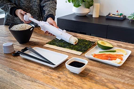 helps you make perfect rolls with absolutely minimal effort on your part. Simply fill the tube with rice and your ingredients, then slowly push down the cylinder onto a nori roll and wrap! You can now enjoy restaurant-style sushi that looks and tastes the part from the comfort of your home! Buy: Sushi Bazooka $14.99