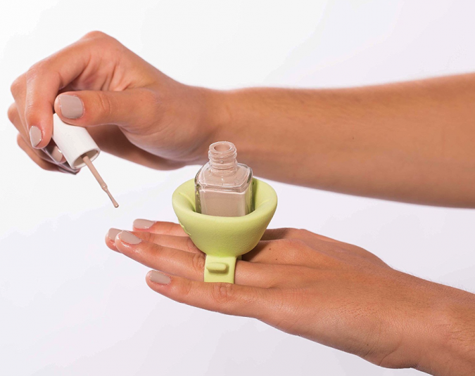 If you don’t have a solid flat surface nearby, Tweexy is the perfect place to put your nail polish bottle. It holds all brands of nail polish and can easily be moved from one hand to the other without smudging your manicure.