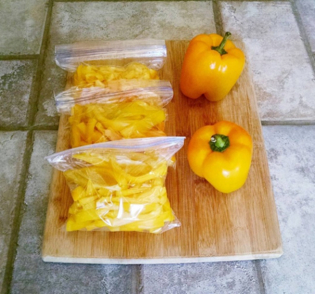 Using plastic seal bags to store sliced vegetables in the freezer or refrigerator