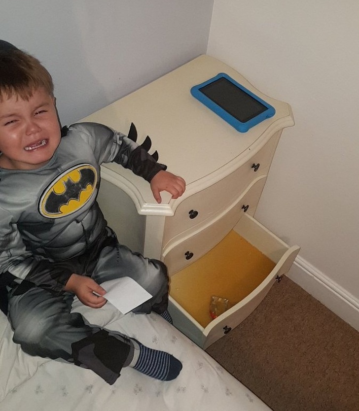 11. “My mom just found a drawer that my 3-year-old brother has been peeing in and he blamed the dog.”