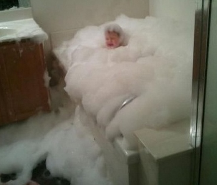 14. “My son insisted on pouring the entire bottle of bubble bath into the tub.”