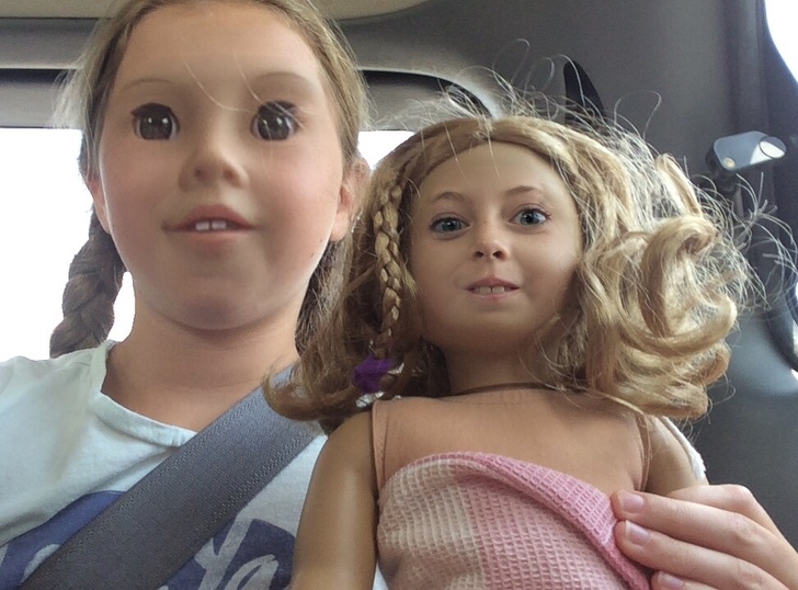 2. “My daughter is the ultimate troll — she switches from a smile to this face in every picture.”