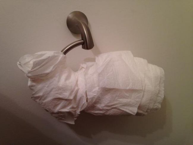 My 3yo “accidentally“ unspooled the entire roll of toilet paper. But don’t worry, he ”fixed” it.