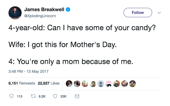 You can’t argue with that logic, but that kid is cold-hearted. That’s a future CEO right there.