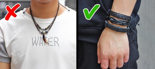 Very short necklaces made of wood and shells are a thing of the past. But for some reason, men continue to wear them. Forget about these necklaces. The same goes for massive rings and large gold chains.
