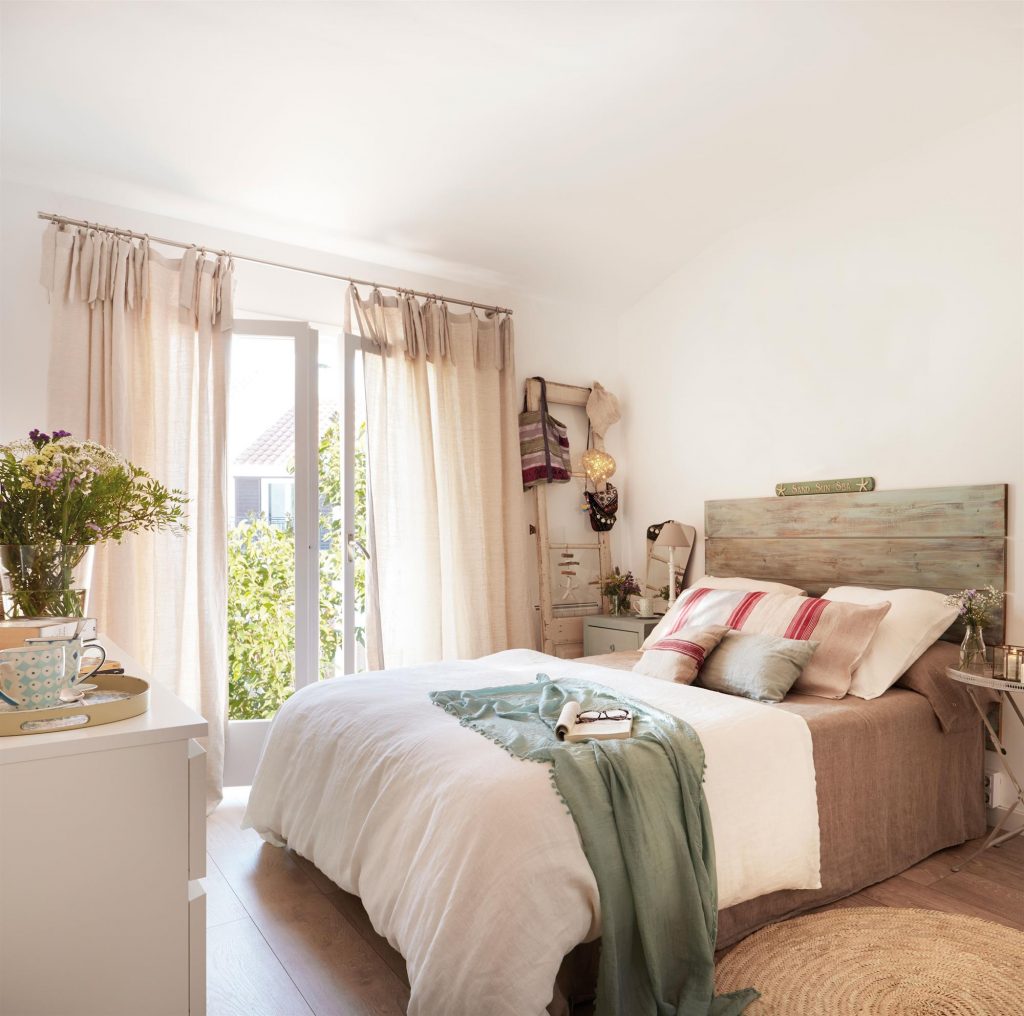 Para que tu dormitorio se vea más espacioso, debe estar bien iluminado con luz natural. Por eso no puedes evitar telas ligeras de tonos claros. Imagina lo románticas que lucirían las cortinas que brillan al sol y se mueven con el aire suave. Al mismo tiempo, es mejor olvidarse para siempre de las cortinas de terciopelo pesadas. De lo contrario tu habitación parecerá el castillo de Drácula.