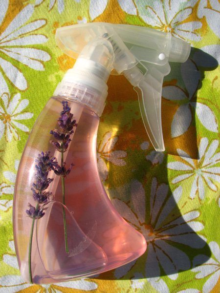 Take your funnel and pour the mixture into your spray bottle. To add a little flair to your spray, insert a sprig of fresh rosemary or lavender into the bottle.