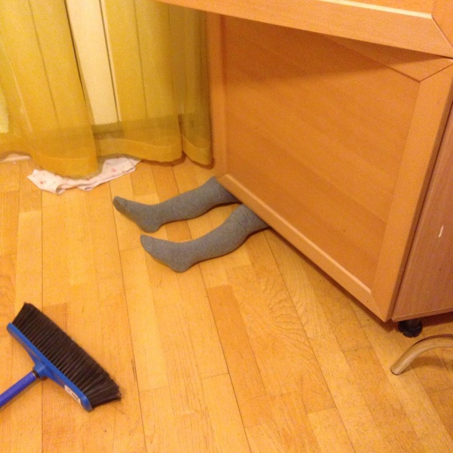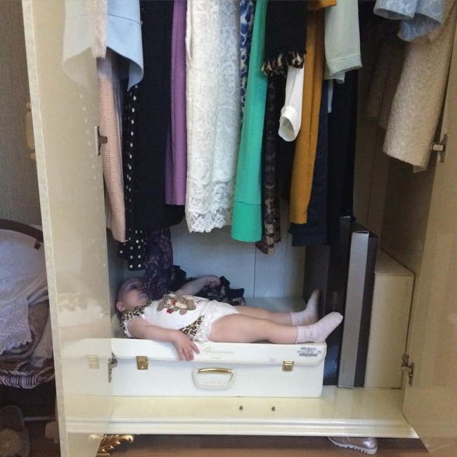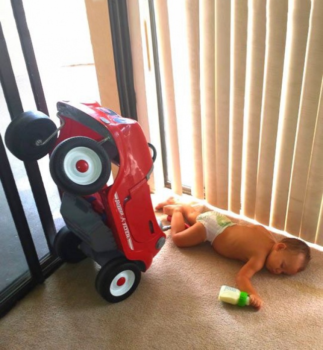 He was driving his toy car around the house and drinking milk, and then I found him like this…