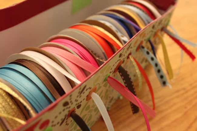 A really useful idea to keep your colorful ribbons organized.