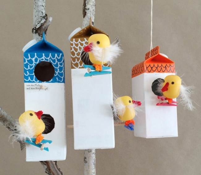 Empty milk cartons and juice boxes are perfect materials for making an amazing birdhouse.