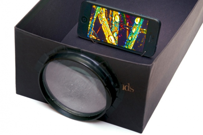 You can make a projector from a shoe box and a magnifying glass to view photos and videos from your smartphone on a big screen.